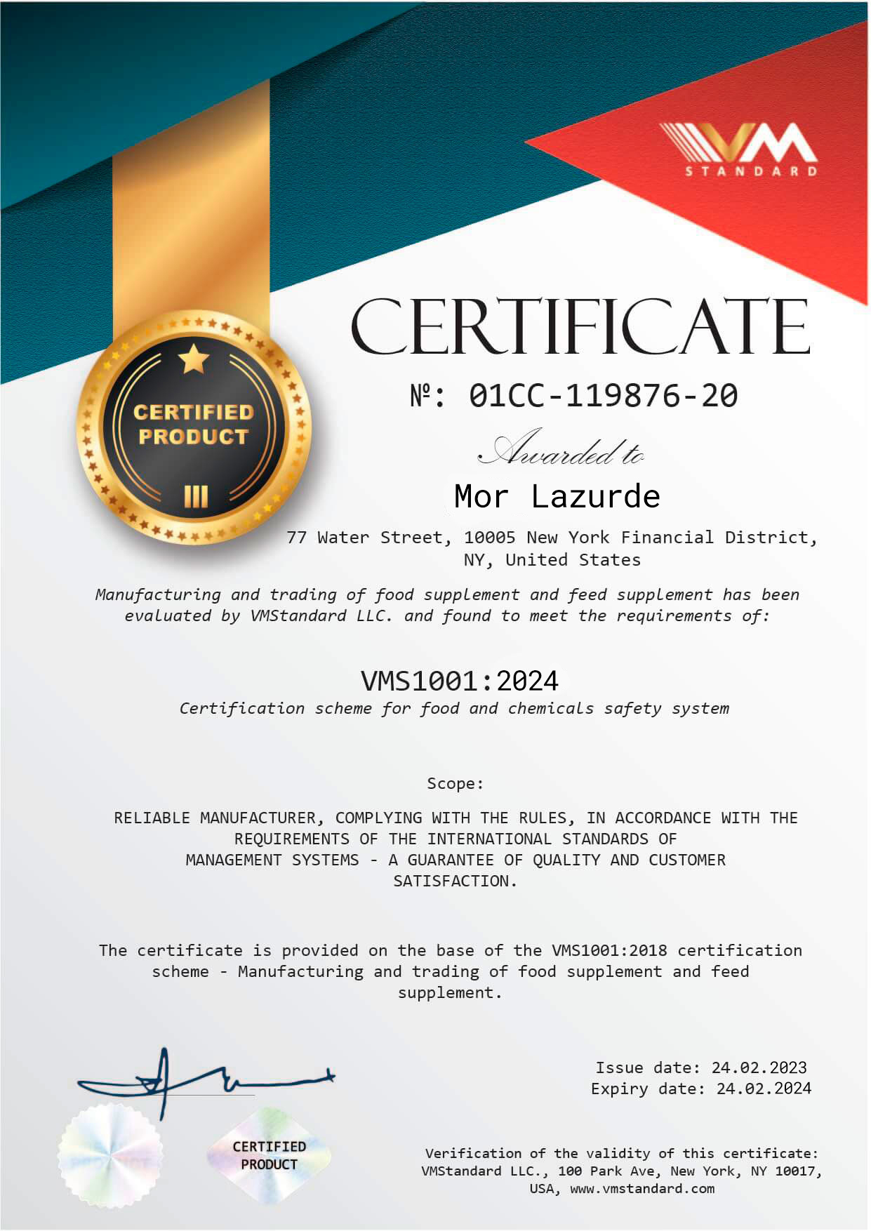 Mor Lazurde معتمد من قبل VMStandard
